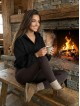 Realizzata in un tessuto elastico di maglia spessa, soffice e calda, garantisce una sensazione di avvolgente morbidezza per tutto il giorno.