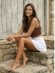 Un top con spalline in materiale elastico a coste garantisce una vestibilità perfetta e sottolinea la figura femminile.